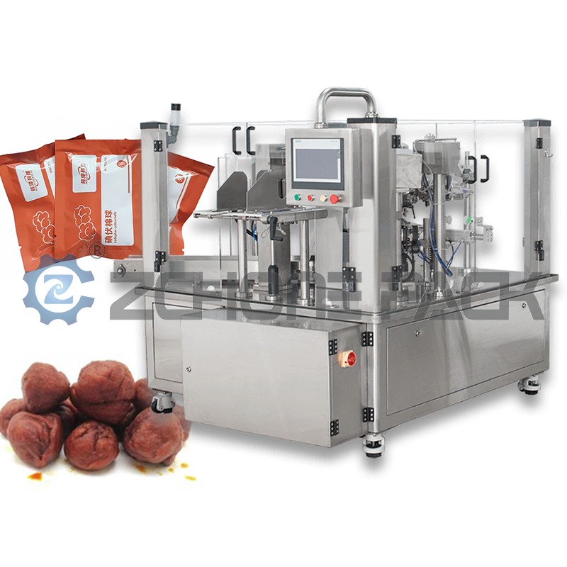 Work flow Giving bag→Coding→Opening bag(or Open zipper bag)→Filling→ Auxiliary→Exhaust→Heat sealing→Forming and output products.